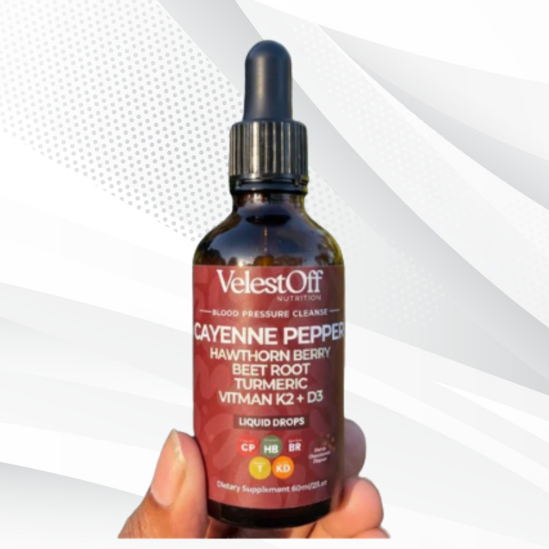 VelestOff Cayenne Pepper Drops are crafted from a premium selection of natural ingredients known for their potential health benefits. This formulation is designed to work synergistically, providing a comprehensive approach to cardiovascular wellness.